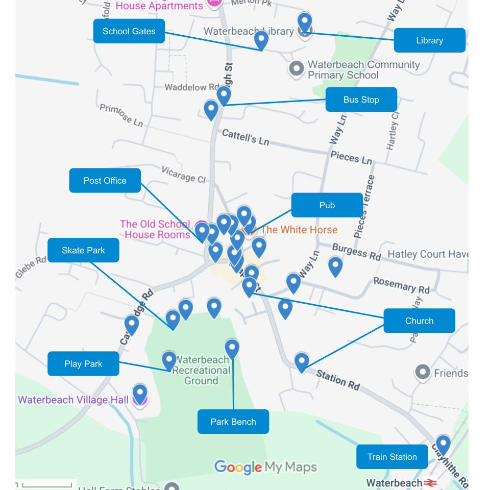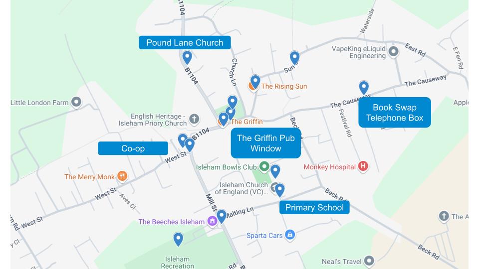 | Places | Locations where people can meet | - Skate Park - Wensum Sport Centre - St Julianโs Church - The Last Pub Standing - Butterfly Cafe - St Peterโs Churchyard |