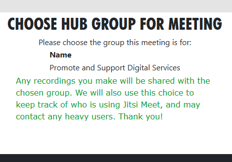 Digital's servers (and sysadmins) know who is using Jitsi Meet, both which Hub account created the meeting, which circle they said the meeting is for, who joined etc. We will keep this information private, and delete it regularly, but we may reach out to you if you use Jitsi Meet regularly, especially if your circle is a heavy user.